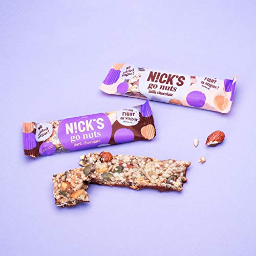 NICKS Go Nuts Milk Chocolade, zaden & notenrepen met melkchocolade, zonder toegevoegde suikers, glutenvrij | 12x30g